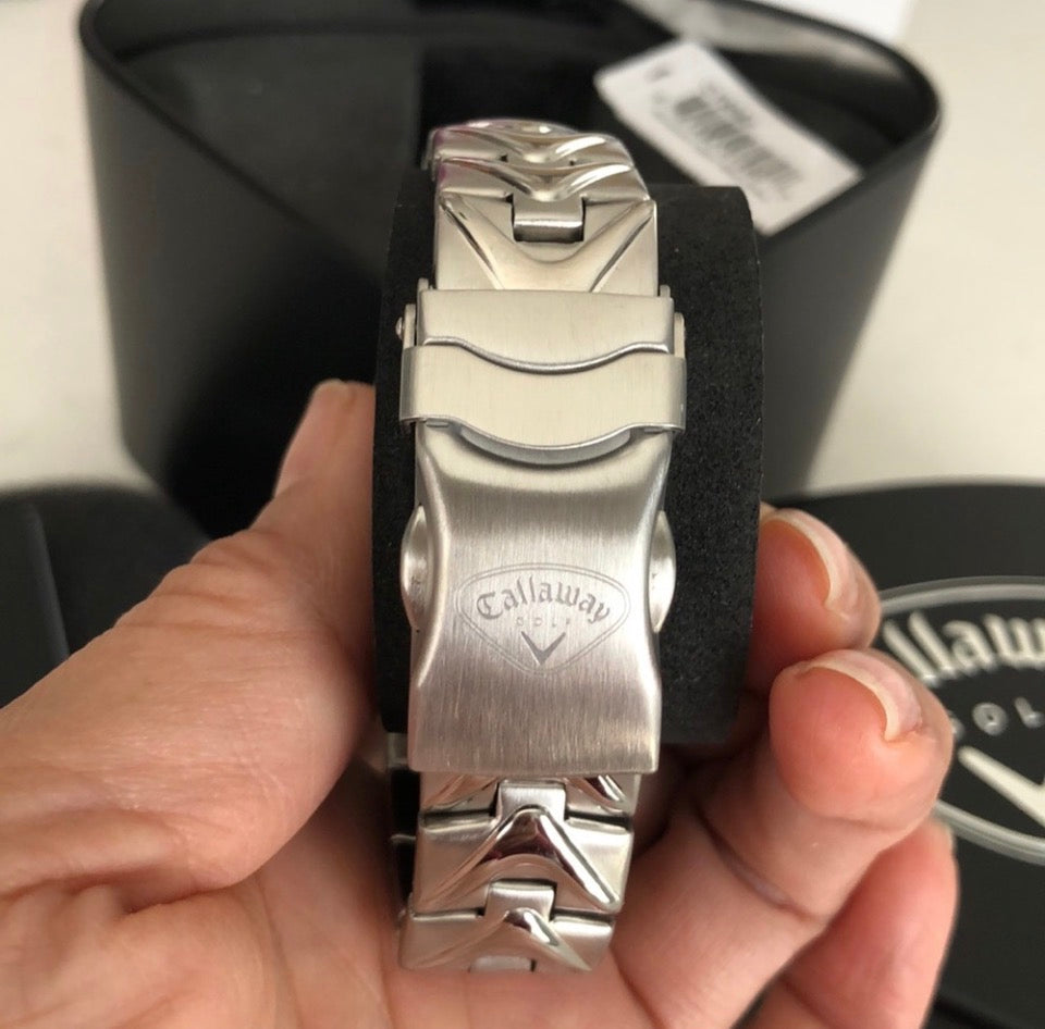 Elevate your game both on and off the course with this sleek Callaway Golf wristwatch, designed for the discerning individual who appreciates a blend of luxury and practicality. The unisex timepiece comes complete with its original box and papers, ensuring authenticity and adding to its appeal as a collector's item.